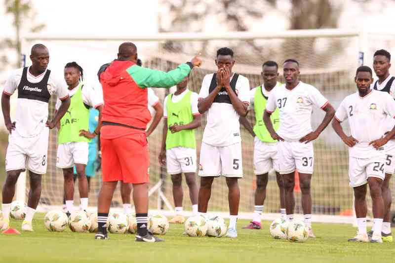Harambee Stars head coach Benni McCarthy instructs his players during a training session as the team finalised its preparations for the 2024 African Nations Championship (CHAN) at Police Sacco Stadium on July 30, 2025. [Stafford Ondego, Standard]